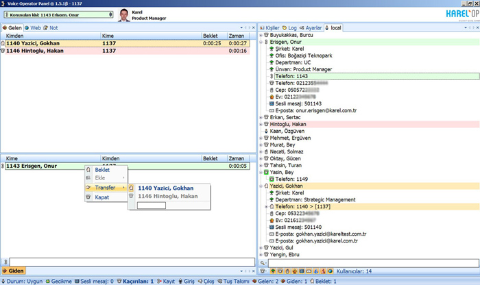 Karel OP100, UCAP Tümleşik İletişim operatörlerinin iletişim trafiğini yönetmelerini kolaylaştıran, Outlook / LDAP / XMPP / MSN / CRM entegrasyon yeteneklerine sahip dahili web tarayıcı ve e-posta iletişim yazılımına sahip operatör konsol yazılımıdır.